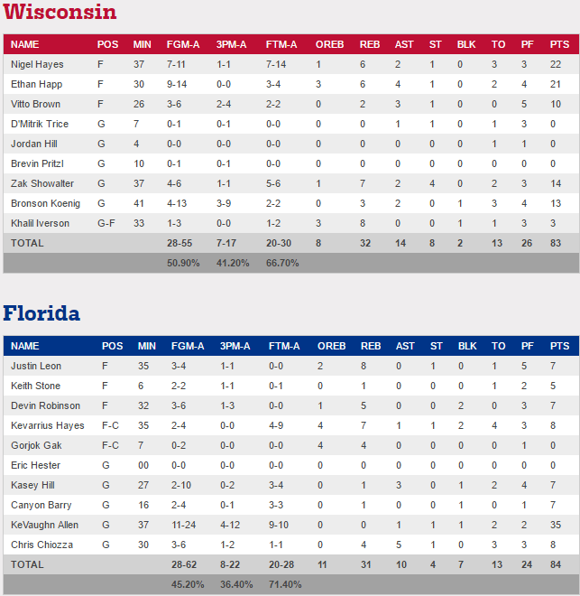 [NCAA] March Madness : Florida crucifie Wisconson; Kentucky stoppe UCLA; La surprise South Carolina