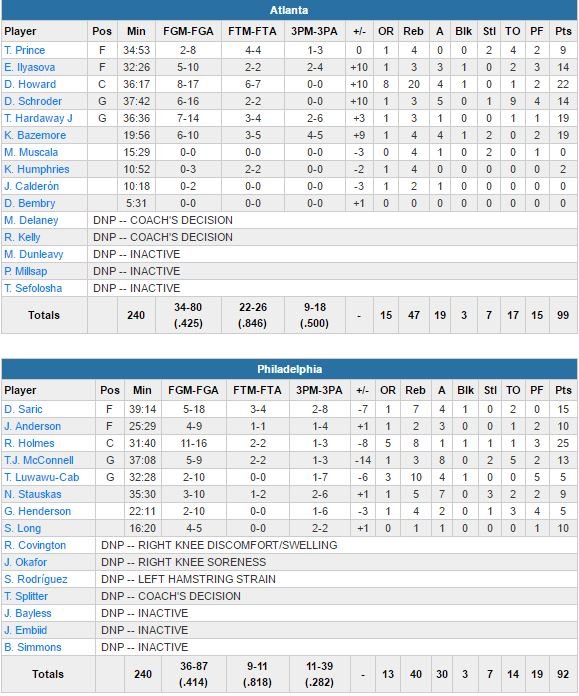 Atlanta Hawks – Philadelphia 76ers 99-92