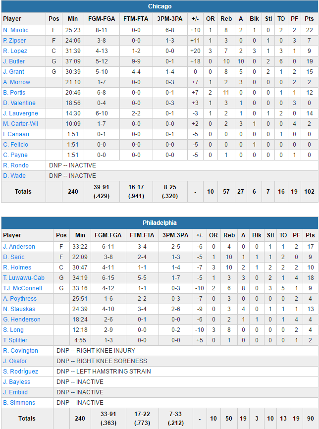 Philadelphia Sixers – Chicago Bulls 90-102