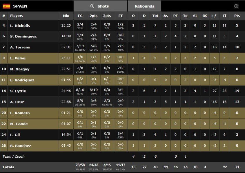 Les filles de Valérie Garnier ont clairement manqué d’inspiration (et donc de réussite) en attaque. Si ça a été mieux en défense en seconde mi-temps, en première c’était loin du niveau nécessaire face à la force de frappe espagnole avec le duo Sancho Lyttle (19 points à 8/10 et 8 rebonds) – Alba Torrens (18 points et MVP du tournoi). Si les bleues n’ont pas joué à leur meilleur niveau, cette équipe d’Espagne était un cran au-dessus, au contraire de 2013.