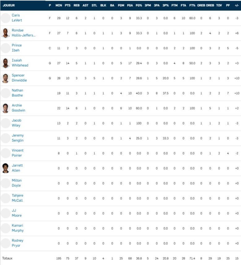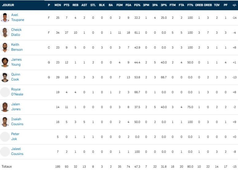 Des joueurs plus expérimentés ont brillé comme Brandon Ingram (26 points à 9/17), Pascal Siakam (24 points à 10/14), Cheick Diallo (27 points, 10 rebonds), DeAndre’ Bembry (22 points à 10/18), Malik Beasley (29 points à 12/30 et 6 rebonds) et Juancho Hernangomez (21 points à 6/15, 8 rebonds et 2 passes).