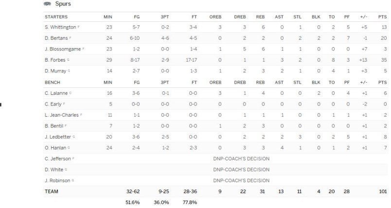 San Antonio Spurs – Philadelphia 76ers 101-95