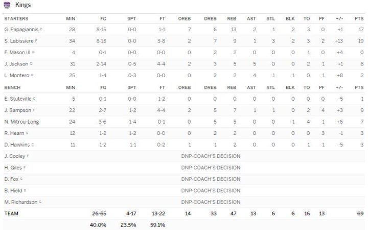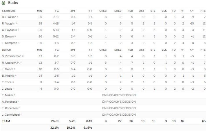 Sacramento Kings – Milwaukee Bucks 69-65
