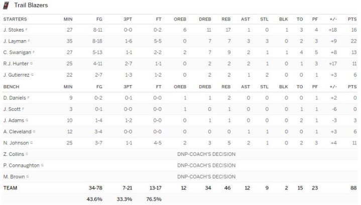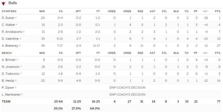 Portland Trail Blazers- Chicago Bulls 88-77