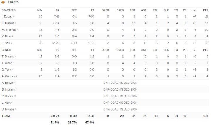 Los Angeles Lakers – Philadelphia 76ers 103-102