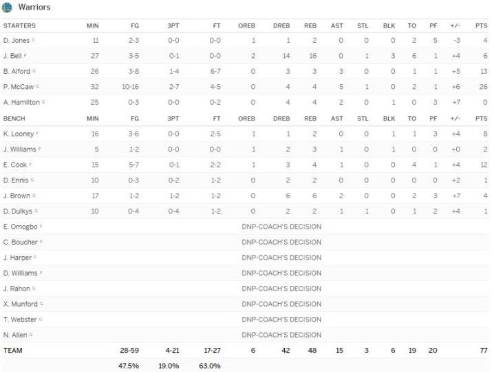Golden State Warriors – Minnesota Timberwolves 77-69