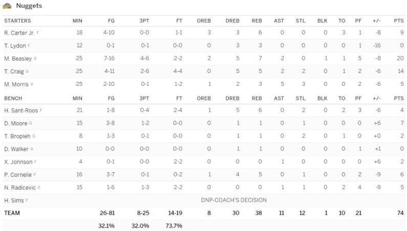 Brooklyn Nets – Denver Nuggets 85-74