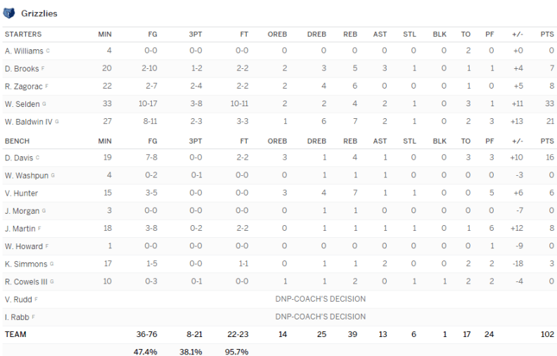 Memphis Grizzlies – Phoenix Suns 102-98