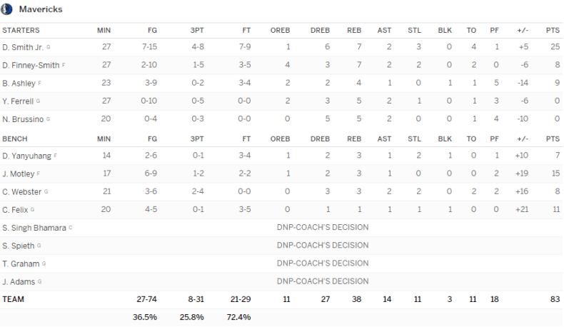 Dallas Mavericks – Sacramento Kings 83-76