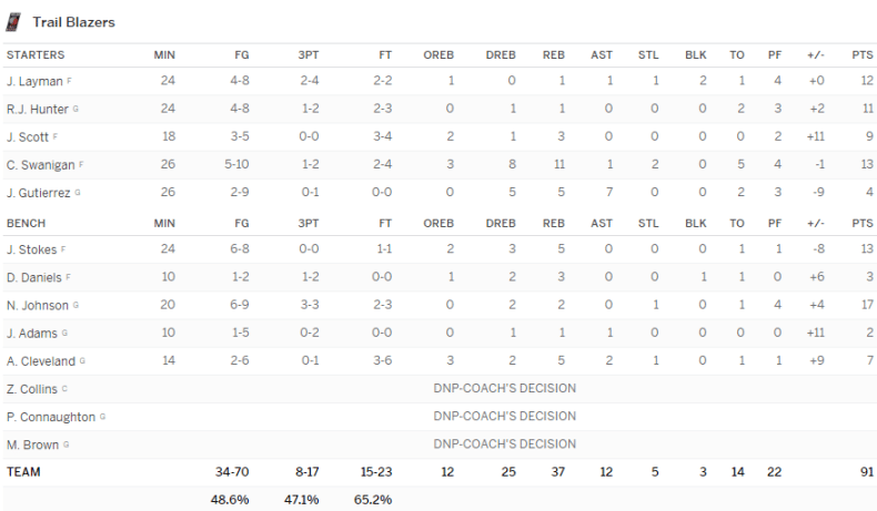 Portland Trail Blazers – Toronto Raptors 91-85