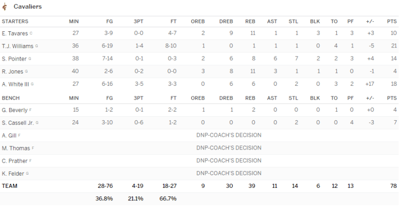 Cleveland Cavaliers – Toronto Raptors 78-75 après prolongation