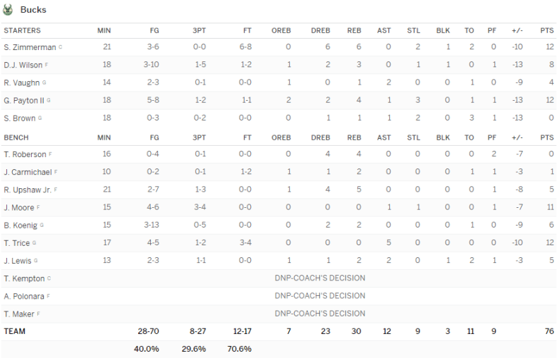 Utah Jazz – Milwaukee Bucks 97-76