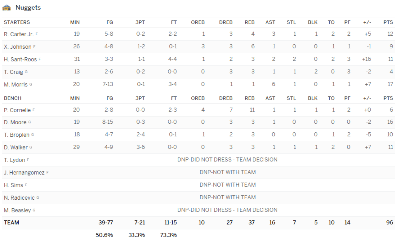 Denver Nuggets – New Orleans Pelicans 96-91