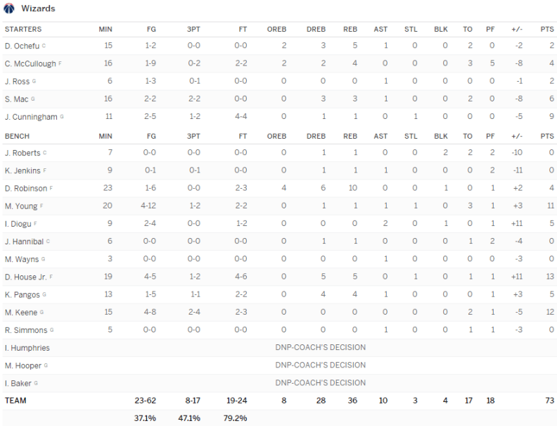 Minnesota Timberwolves – Washington Wizards 80-73