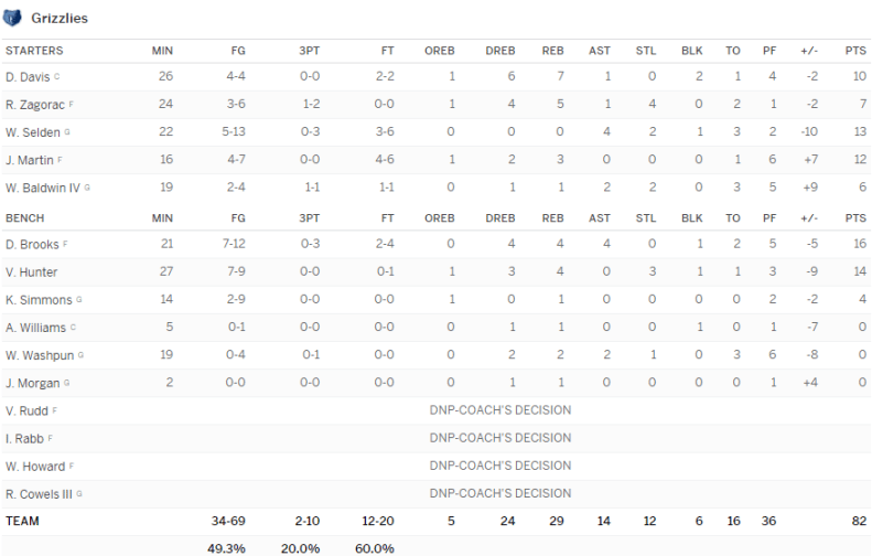 Portland Trail Blazers – Memphis Grizzlies 87-82