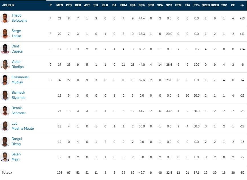De façon plutôt surprenante, Victor Oladipo, dans l’équipe perdante, a remporté le trophée de MVP (Trophée Manue Bol). Il signe 28 points à 11/25, 9 rebonds et 5 passes. Son coéquipier Emmanuel Mudiay totalise lui 22 points, 8 rebonds et 9 passes.