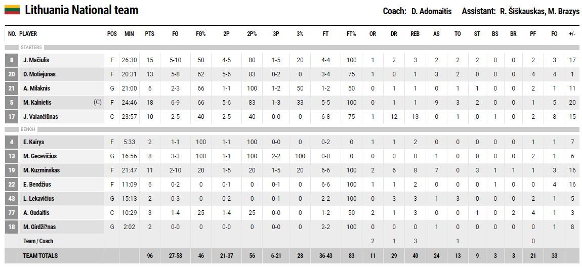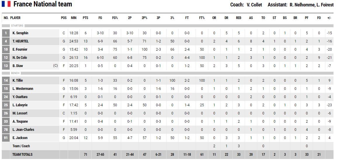 Heurtel bon, De Colo presque très bon, Fournier 10pts en 15min malheureusement pour lui les arbitres étaient Lituaniens, et Jackson à fait son match