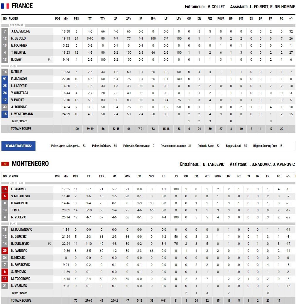 Après avoir écrasé la Belgique hier, l’équipe de France a pulvérisé le Monténégro dans un festival offensif, 100-70, dont 61 points inscrits en première mi-temps. A la pause c’était plié et la seconde mi-temps n’a eu que peu d’intérêt, voire aucun.