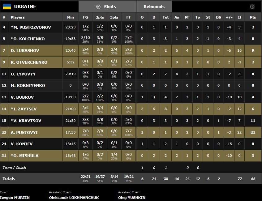 Le début de match a été compliqué pour les deux équipes, même si l’Italie a pris les devants 9-8 après 4 minutes de jeu en ne perdant qu’un ballon. C’est pourtant l’Ukraine (qui aura pris jusqu’à 5 points d’avance dans le match, contre 17 pour l’Italie) menée par Viacheslav Kravtsov qui s’est retrouvée en tête (19-16) à la fin du 1er quat-temps en shootant à 60%. Marco Belinelli a ensuite repris les choses en main en enchaînant les tirs à 3-points pour donner 8 points d’avance aux siens en fin de 1ère mi-temps, 37-29. Grâce à lui et Daniel Hackett (4 points, 5 passes et 3 rebonds à la mi-temps), les Italiens ont réussi à creuser un écart de 10 points à la pause, 43-33.