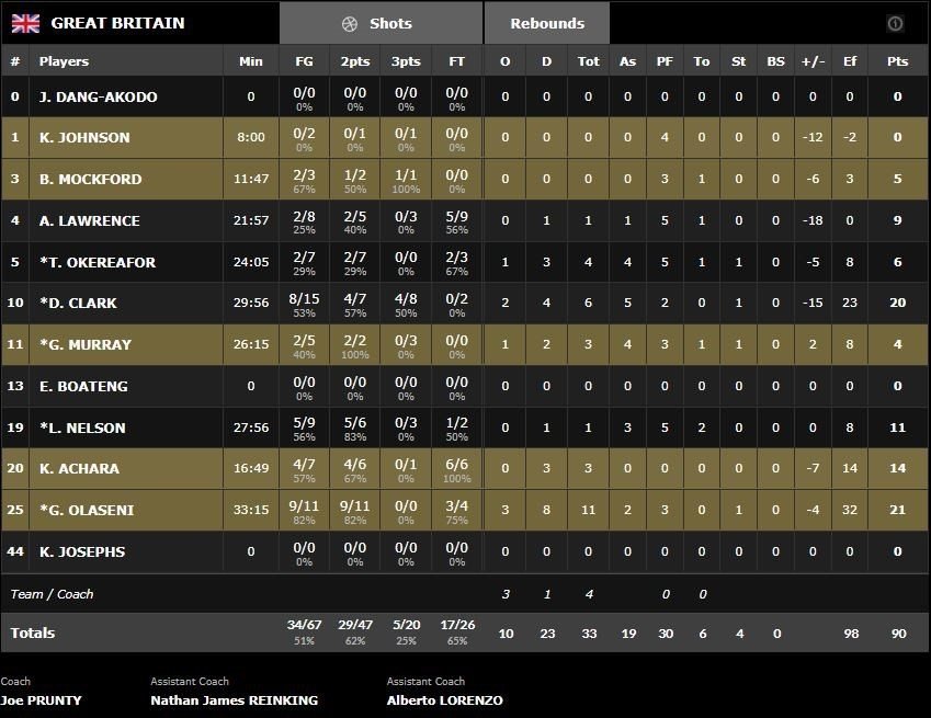 La Grande-Bretagne a solidement démarré avec un avantage 11-8 en milieu de 1er quart en enchaînant les réussites lointaines. Mais en face Semih Erden était très chaud avec 9 points dans la période et la Turquie s’est retrouvée devant 23-18 après 10 minutes de jeu alors qu’elle avait couru après le score quasiment toute la période. À la pause, l’avantage était toujours dans le même camp, 49-36.