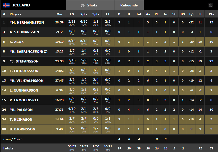 Les bleus ont bien démarré la seconde mi-temps avec deux paniers de suite de Fournier et la bonne présence intérieure de Joffrey, 57-44. Comme lors de ses deux premiers matchs, l’Islande a fini par craquer et exploser en vol. Les bleus ont haussé le rythme et ont pris le large grâce à leurs extérieurs, dont Edwin Jackson, auteur d’un énorme passage, mais aussi Heurtel et De Colo. Avec 3 paniers à 3-pts de suite, dont 2 du meilleur marqueur du championnat espagnol, la France a enclenché un 24-5 pour mener 83-53 puis 86-56 sur un dernier 2+1 presque au buzzer de Jackson.