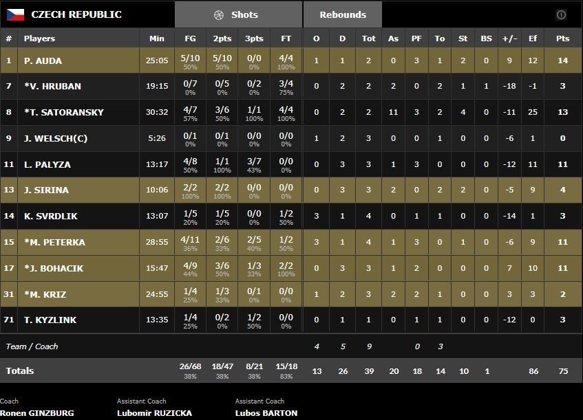 Côté tchèque (38% de réussite sur le match contre 50% pour le Monténégro) on retrouve 5 joueurs à au moins 10 points dont Tomas Satoransky (13 points à 4/7 et 11 passes). L’équipe a réussi 10 belles dernières minutes pour réduire l’écart mais il était déjà trop tard compte tenu du 78-55 encaissé sur les 3 premiers quarts. Le Monténégro est en course pour disputer les huitièmes de finale (il s’agirait des premiers de son histoire).