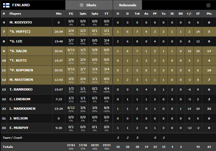 L’intérieur des Bulls sort encore un gros match avec 23 points à 6/12. Sasu Salin ajoute 17 points et Petteri Koponen 9. Côté Islandais Stefansson marque 13 points, Hermannsson et Baeringsson 11 chacun.
