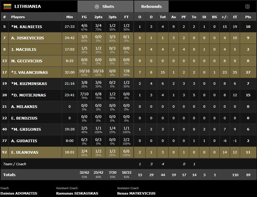 Malgré les 26 points de Dennis Schröder, l’Allemagne n’a fait le poids qu’une mi-temps face à la Lituanie de Jonas Valanciunas (27 points à 10/16 et 15 rebonds), qui s’impose 89-72 en s’assurant par la même occasion la tête du groupe B. La Lituanie affrontera le 4ème groupe A (pour le moment la Pologne) en huitièmes de finale. Pour l’Allemagne, ce sera la France, 3ème du groupe A.