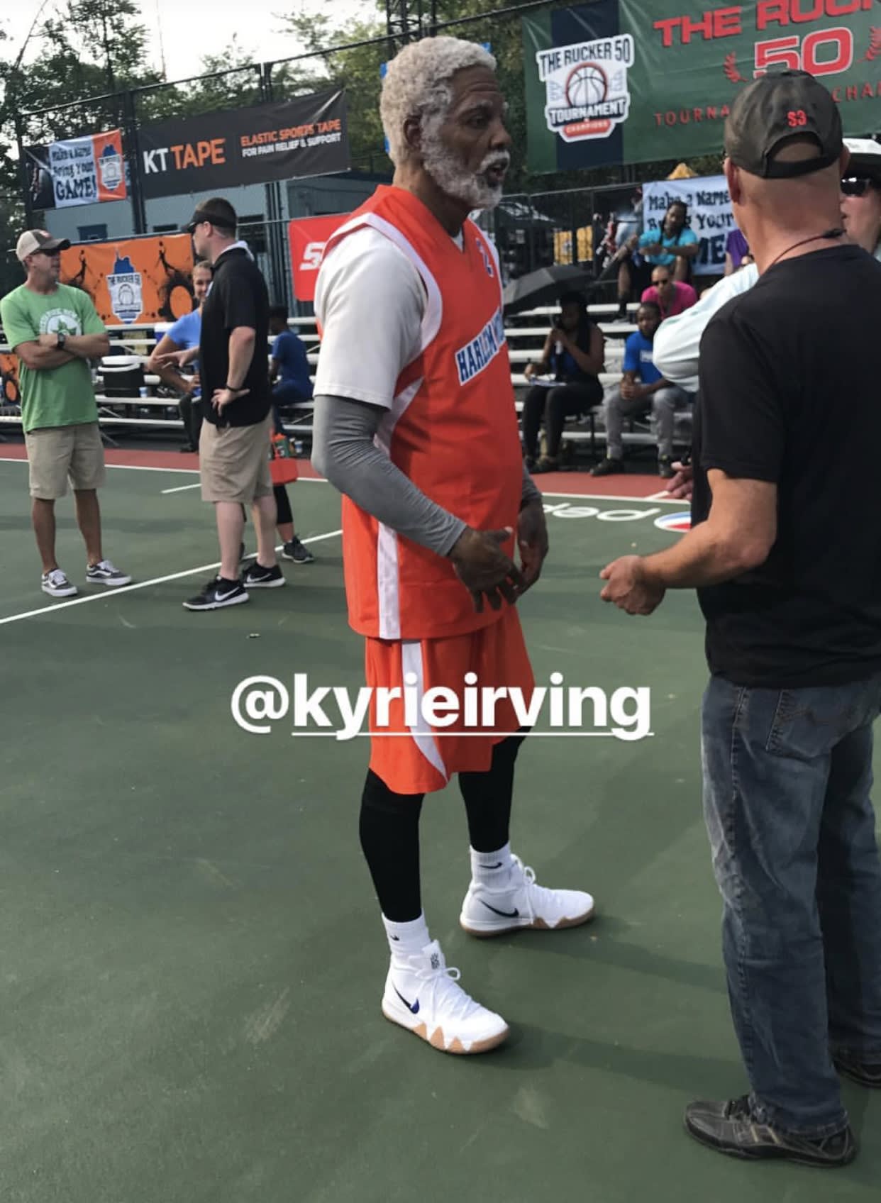 Reggie Miller a peut-être fait une petite boulette en postant cette photo de Kyrie Irving sur le tournage du film Uncle Drew. Les chaussures aux pieds du nouveau meneur des Celtics sont en effet inédites et laissent penser qu’il pourrait s’agir du 4ème modèle signature d’Irving chez Nike.