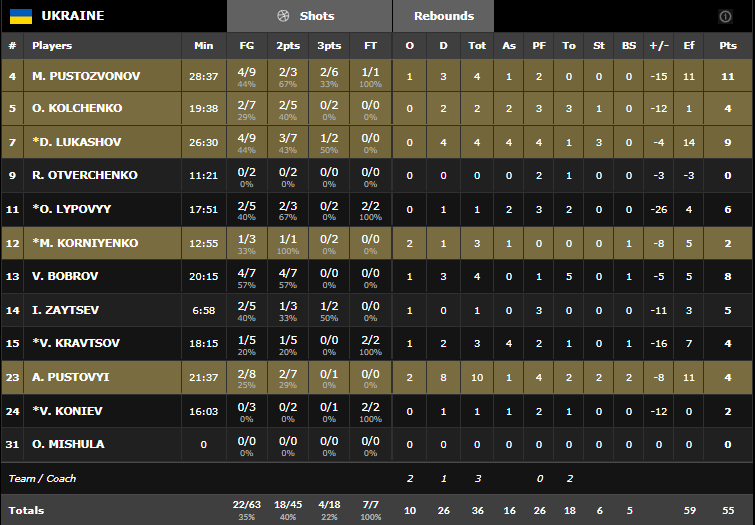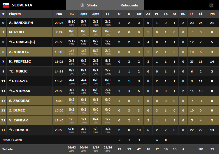 Ils n’ont même pas eu besoin d’un grand Goran Dragic (5 points à 2/12 et 4 passes) puisqu’ils ont pu notamment compter sur un super duo Anthony Randolph (21 points à 8/10 en 20 minutes) – Luka Doncic (14 points, 10 rebonds et 6 passes). Collectivement ils ont été largement au-dessus de ces ukrainiens, qui ont eu de très gros soucis pour trouver des solutions en attaque (55 points à 35%).