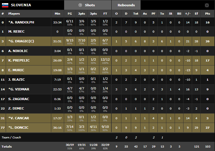 Le quatuor Goran Dragic (26 points à 9/15, 6 rebonds et 8 passes), Luka Doncic (27 points à 7/14 et 9 rebonds), Anthony Randolph (16 points à 6/11 et 9 rebonds) et Gaspar Vidmar (9 points, 6 rebonds et 4 contres) ont porté les leurs avec chacun une superbe prestation. En face Kristaps Porzingis a tout tenté, même s’il a été limité par ses fautes encore une fois. Il compile 34 points à 12/21 et 6 rebonds, bien aidé par un excellent Davis Bertans (23 points à 6/14 à 3-pts).