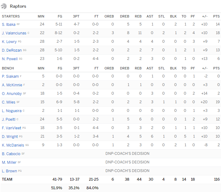 Toronto domine Detroit facilement avec 18 points et 11 rebonds de Jonas Valanciunas tandis qu’Indiana se balade face au Maccabi Haifa avec 7 joueurs à au moins 10 points.