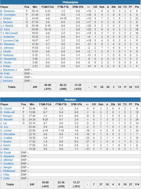 Philadelphia 76ers – Brooklyn Nets 133-114