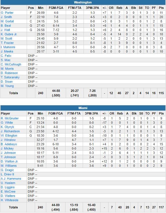Miami est venu tant bien que mal à bout de Washington grâce à son banc et surtout un game winner de Jordan Mickey, Houston a battu Memphis malgré la maladresse de James Harden (18 points à 2/13, 5 rebonds et 9 passes) et Chris Paul (9 points à 3/12 et 6 passes) et Portland a eu raison de Phoenix.
