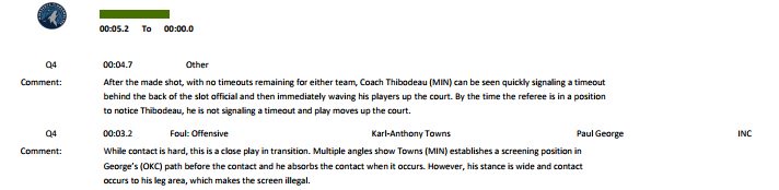 Comme pour chaque match serré la NBA a publié son rapport sur les deux dernières minutes de Thunder – Wolves et deux erreurs ont coûté la victoire au Thunder. Tout d’abord après le panier de Carmelo Anthony à moins de 5 secondes de la fin, qui a donné l’avantage aux siens, Tom Thibodeau a demandé un temps mort dans le dos des arbitres, avant de se raviser et il aurait dû être sanctionné d’une faute technique.