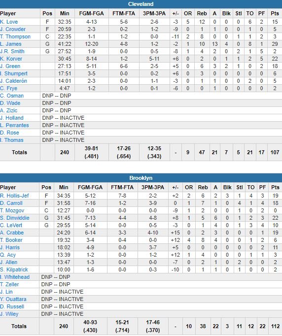 Brooklyn Nets – Cleveland Cavaliers 112-107