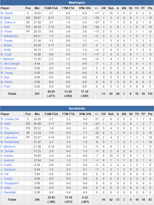 Washington Wizards – Sacramento Kings 110-83