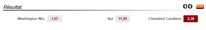Pour le pari un peu moins risqué, on va tenter notre chance sur le choc de la nuit entre les Wizards et les Cavaliers. L’an passé cette affiche avait donné lieu à un des plus beaux matchs de la saison régulière mais les deux équipes se cherchent en ce début de saison. Les Wizards ont perdu face aux Lakers alors que les Cavaliers restent sur 4 défaites de rang et doivent réagir. Ce ne sera pas simple face aux Wizards mais ce serait le match idéal pour le faire. Au vu de la cote de à 2.30 (elle peut varier) pour une victoire dans le temps réglementaire des joueurs de LeBron James on est tenter de miser là-dessus, avec un gain potentiel de 130€.