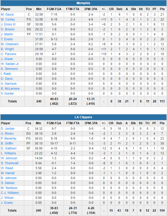 Les Clippers n’ont jamais été vraiment distancés mais ils ont payé leur trop grande maladresse à l’extérieur, limités à 4/26, et une défense pas assez agressive. Blake Griffin termine avec 30 points à 10/17 et 11 rebonds tandis que Patrick Beverley ajoute 23 points et 7 rebonds mais les autres joueurs n’ont pas assez pesé, Austin Rivers, Danilo Gallinari et Lou Williams ayant combiné 30 points à seulement 10/31.