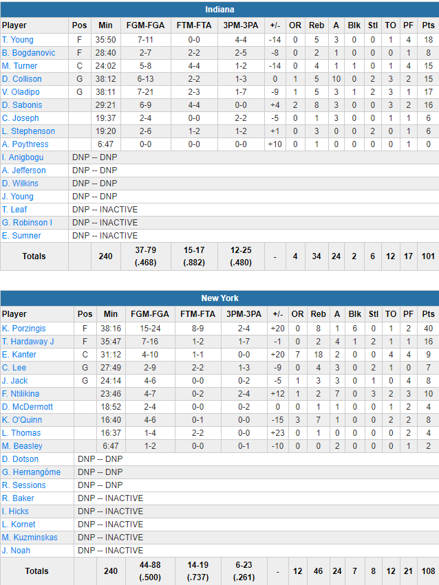 New York Knicks – Indiana Pacers 108-101