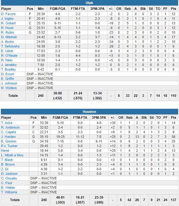 Houston Rockets – Utah Jazz 137-110