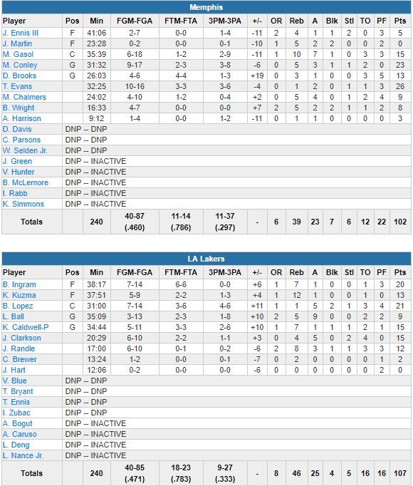 Los Angeles Lakers – Memphis Grizzlies 107-102