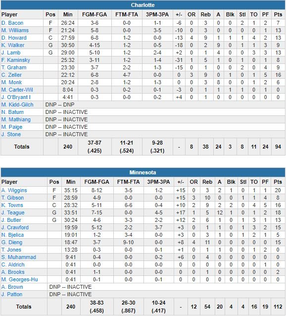 Minnesota Timberwolves – Charlotte Hornets 112-94