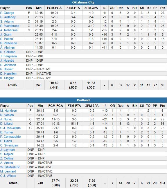 Portland Trail Blazers – Oklahoma City Thunder 103-99