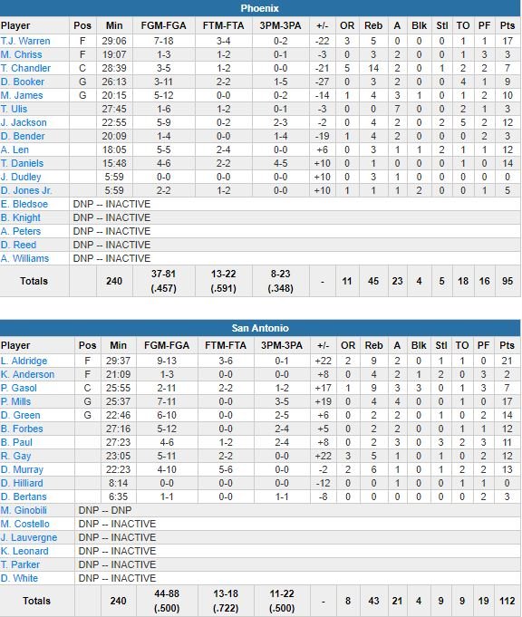San Antonio Spurs – Phoenix Suns 112-95