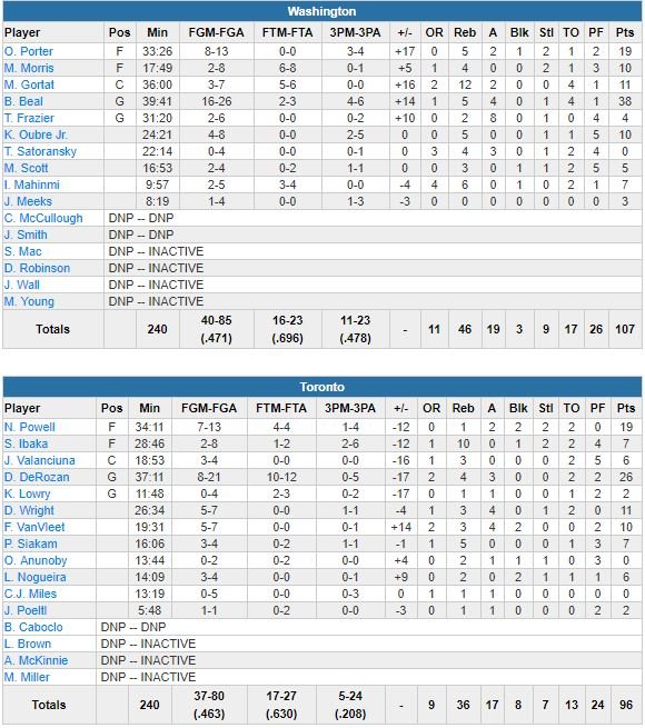 Toronto Raptors – Washington Wizards 96-107
