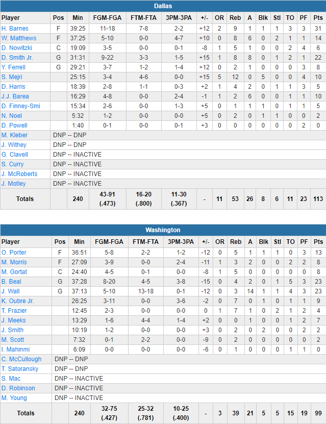 Washington Wizards – Dallas Mavericks 99-113