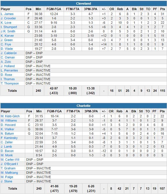 Charlotte Hornets – Cleveland Cavaliers 107-115