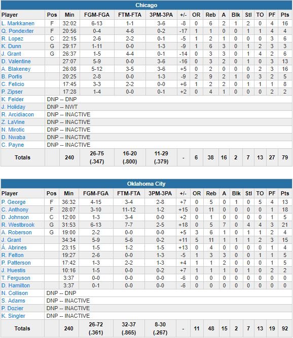 Oklahoma City Thunder – Chicago Bulls 92-79