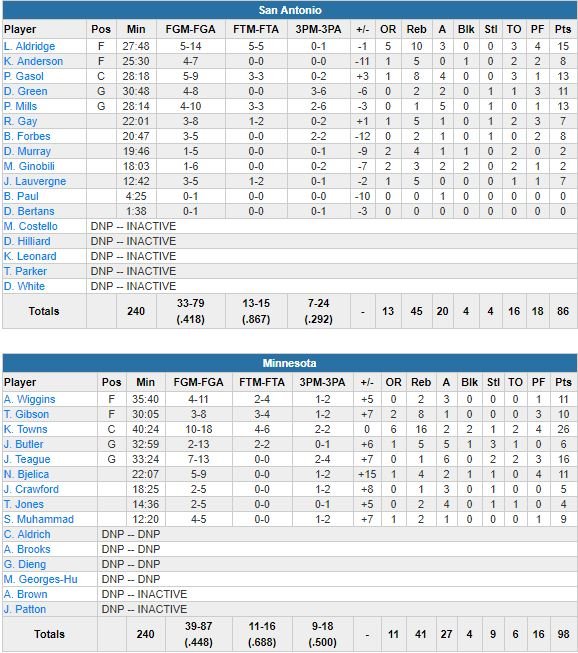 Minnesota Timberwolves – San Antonio Spurs 98-86